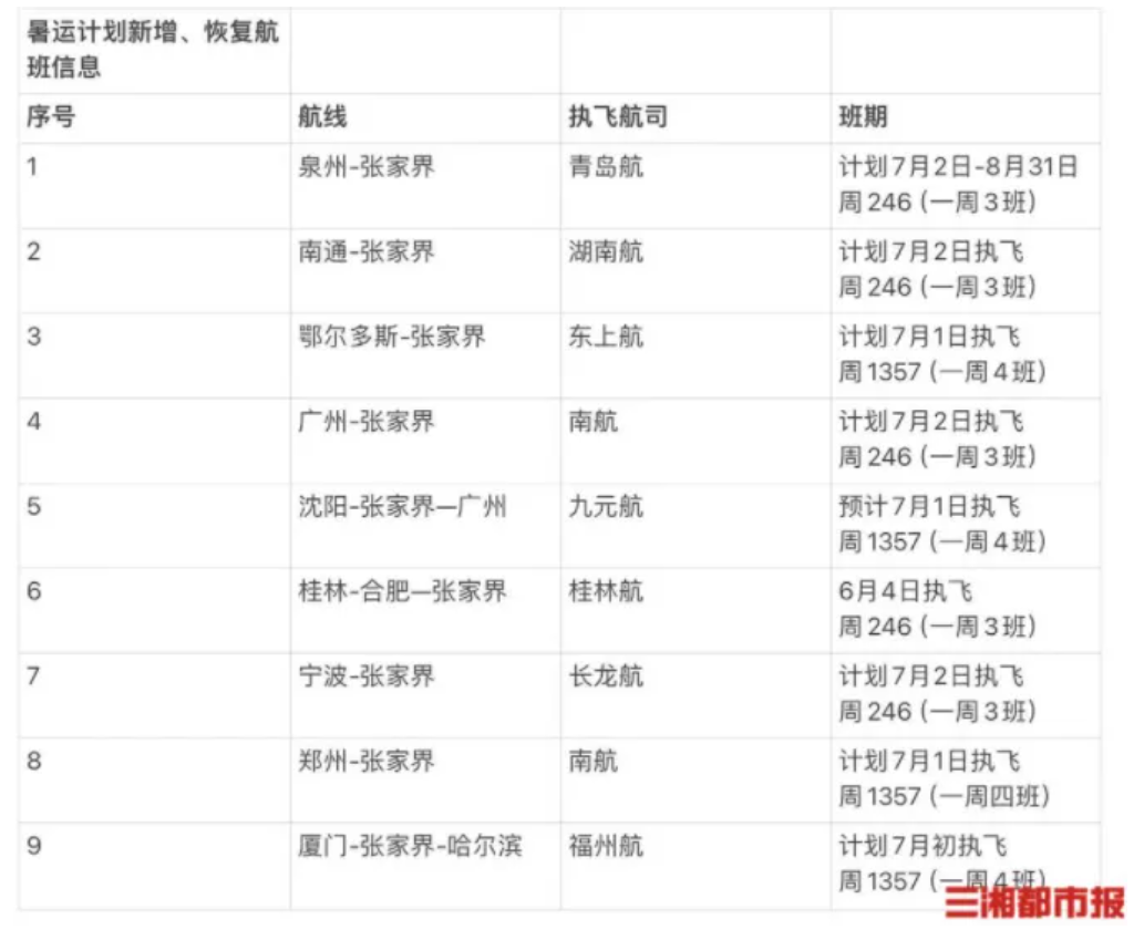 暑假旅游季,張家界機場恢復新增9條國際國內航線,增加通航42個城市