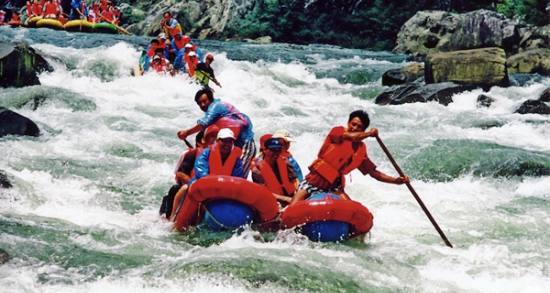 被譽(yù)為“中國生態(tài)第一漂”,位于東江湖最南端的黃草鎮(zhèn)境內(nèi),全程26千米。從龍王廟起漂點(diǎn)到燕子排終漂點(diǎn)整個(gè)落差75米,急灘108個(gè),漂流河道兩巖有保存比較完好的原始次森林,奇巖怪石林立,古樹遮天蔽日,老藤攀崖附壁,飛鳥跳躍枝頭。東江漂流以其灘多浪急落差大、水碧石怪魚奇怪、兩岸森林植被佳而 聞名,是國內(nèi)目前最具探險(xiǎn)的融歷險(xiǎn)、探幽、獵奇、拾趣為一體的漂流去處。