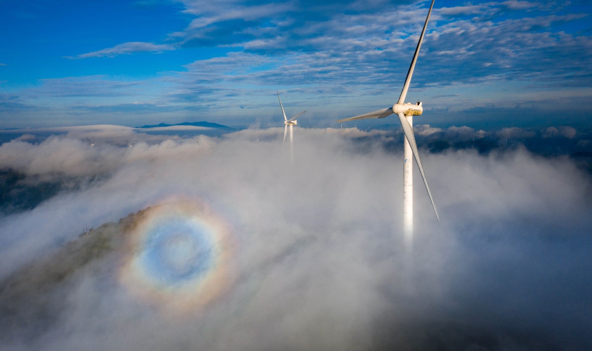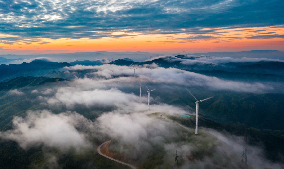 高聳入云的“大風(fēng)車”沿著山脊蜿蜒數(shù)百公里,高聳入云,猶如一條條巨龍騰空遠去,蔚為壯觀。